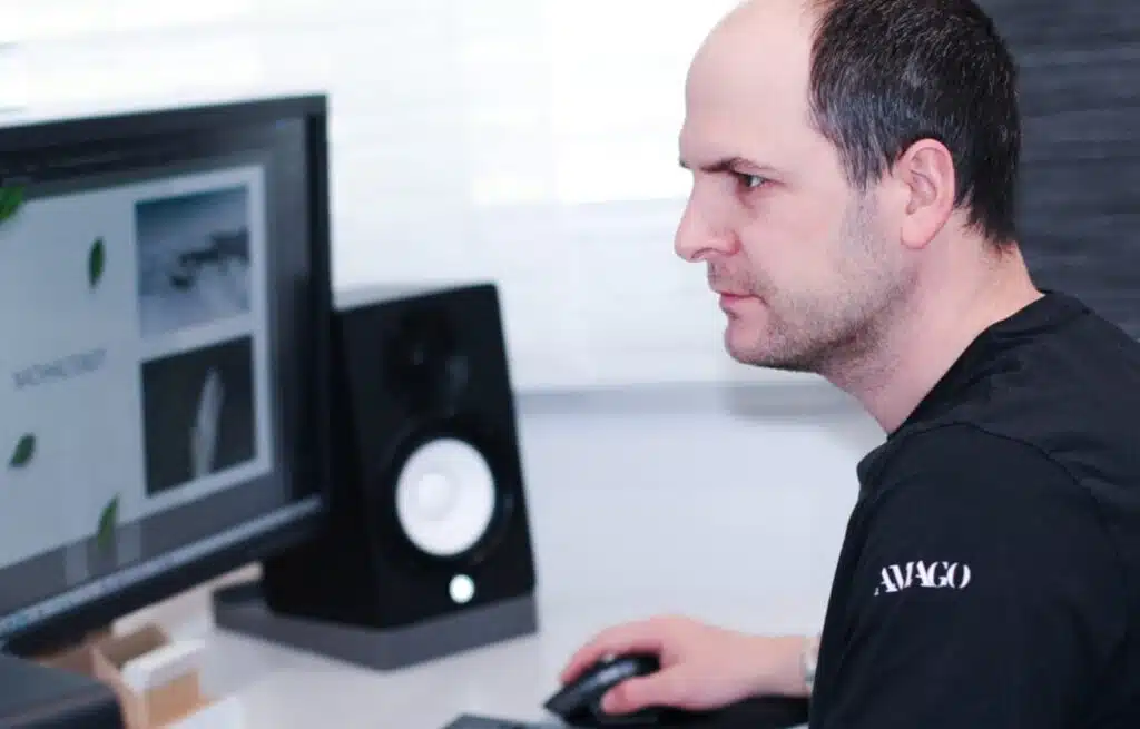 Smart wie sein Phone in der rechten und sein Laptop in der linken Hand. So navigiert er durch die AMAGO Projekte, um dank seiner Checklisten immer drei Schritte voraus zu sein. Die Richtung kommuniziert er während aller Redaktions- und Produktionsphasen klar im Team und zum Kunden.